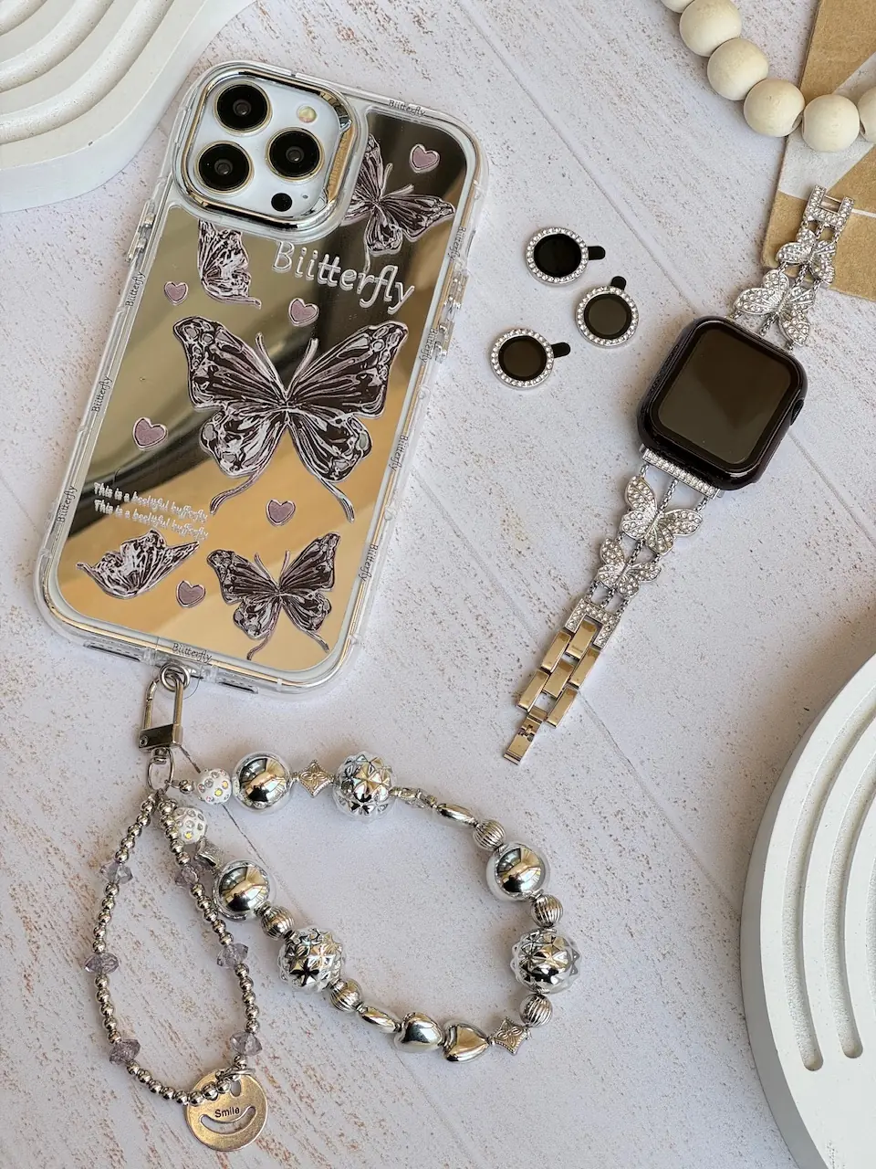 قاب پروانه آینه ای با آویز و محافظ لنز نگین دار (کدC1786)